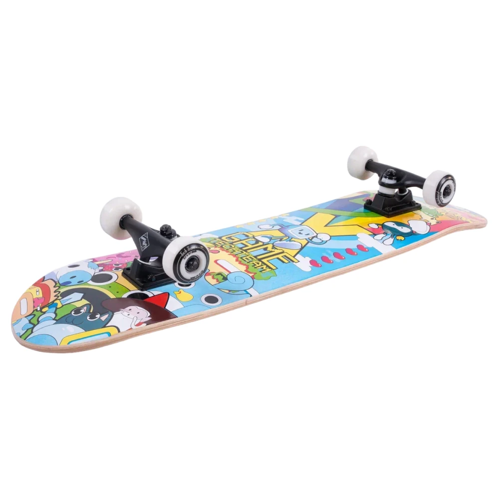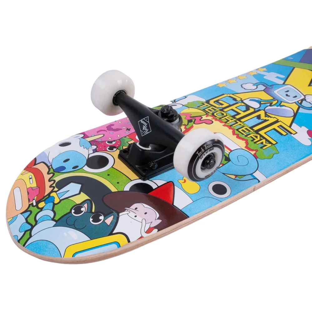 Скейтборд Tech Team X-Game 2024 желтого цвета, сделан компанией Tech Team, несомненно стоит внимания. Дека скейтборда изготовлена из 9 слоев китайского клена, что делает этот деревянный скейтборд прочным и надежным. Размер деки 31"х 8", подходит как для взрослых, так и для детей. Верхняя часть покрыта черной шкуркой стандарта жесткости 80AB, обеспечивающей хорошую сцепляемость. Нижняя часть украшена уникальным принтом в желтых тонах, прекрасно сочетающим в себе стиль и безумно яркие образы персонажей 8-битных игр. Материал колес - PU 52x32 mm, жесткость 85А. Подшипники стандарта ABEC 9 на колесах обеспечивают плавное и ровное катание. Тип деки - двойной концевой загиб (Double Kick), что позволяет прокачать навыки трюков. Этот скейтборд, безусловно, подойдет для новичков, желающих научиться основам катания, и для опытных райдеров. В общем, купить скейтборд Tech Team X-Game 2024 - замечательный выбор для любителей городских поездок и парковых трюков.