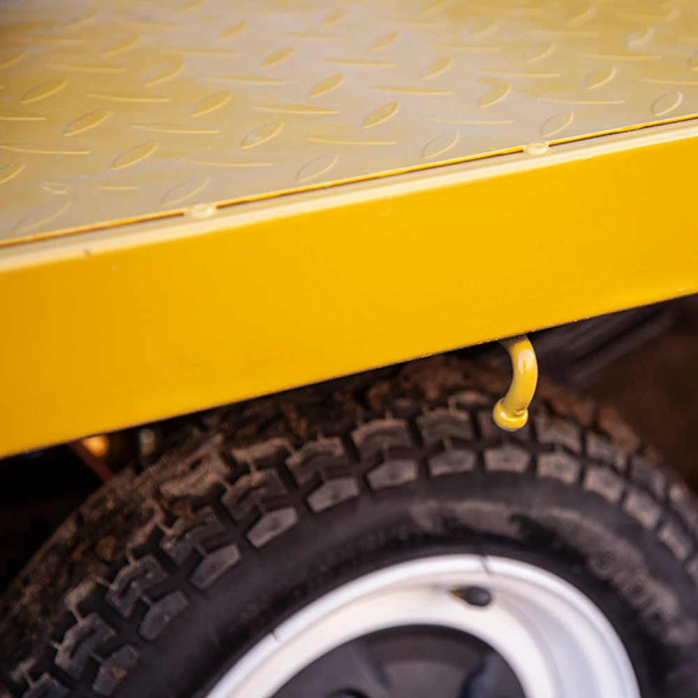 Оснащенность модели бесщеточным редукторным электродвигателем мощностью 1800 Вт и емкой батареей на 32 А*ч позволяют разогнаться до скоростных показателей 25 км/час и преодолеть расстояние до 30 км. Стальная конструкция кузова оснащена высокими съемными бортами, увеличивающими степень практичности техники, исключающими случайное падение груза и другие форс-мажорные ситуации. При максимальной загруженности – до 1000 кг тележка может двигаться на минимальных передачах.