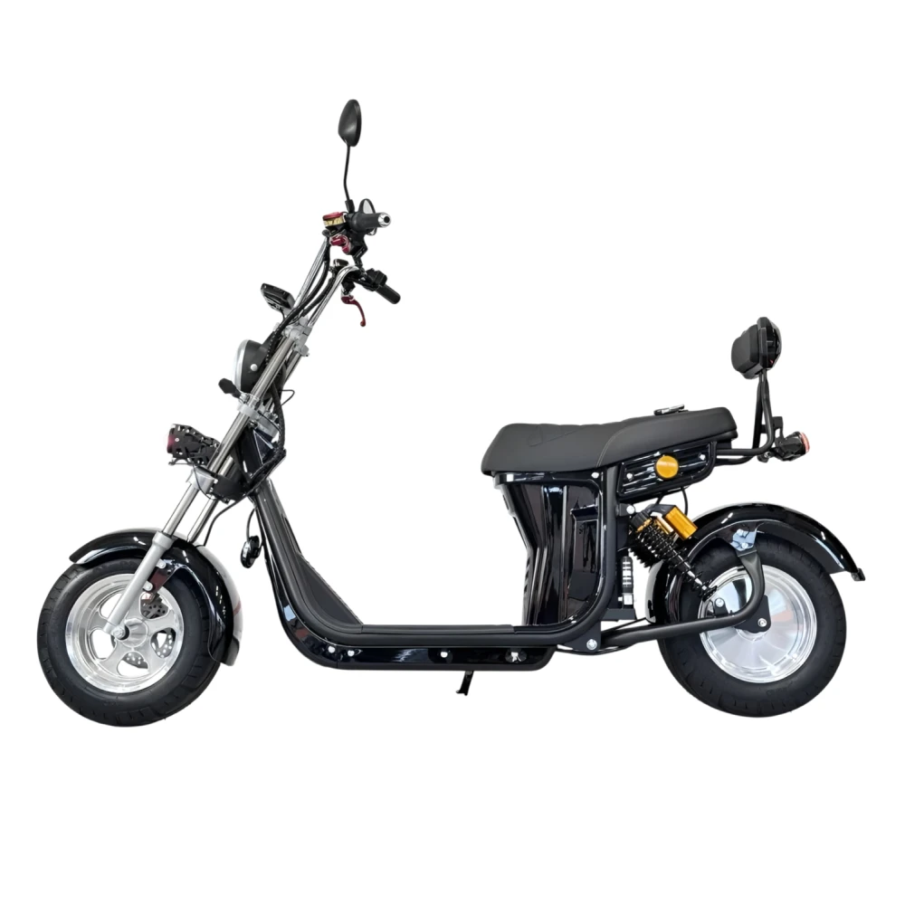 Электроскутер Citycoco GT E30 в черном глянцевом цвете — это универсальное средство передвижения. С мощностью 3000W и задним приводом, он обеспечивает отличную динамику и маневренность на городских улицах. Благодаря двухколесной конструкции и надувным колесам диаметром 18 дюймов, скутер уверенно держится на дороге, что делает его идеальным для поездок по различным покрытиям.Съемный аккумулятор с напряжением 60V позволяет преодолевать расстояние до 50 км на одном заряде, что делает его идеальным вариантом для ежедневных поездок. Время зарядки составляет всего 5 часов, что обеспечивает быструю готовность к новым приключениям. Кроме того, в конструкции предусмотрено дополнительное место под аккумулятор, что увеличивает возможности автономной работы.Скутер весит 75 кг и может выдерживать максимальную нагрузку до 200 кг, что делает его подходящим для различных пользователей. Дисковые гидравлические тормоза обеспечивают надежную остановку, а большое мягкое сиденье и амортизаторы гарантируют комфорт даже при длительных поездках.Дополнительно, Citycoco GT E30 оснащен бортовым компьютером, зеркалами, звуковым сигналом, фарой и поворотниками, что повышает безопасность и удобство. Большая дека под ноги и прочная конструкция делают поездки еще более приятными.Электроскутер Citycoco GT E30 — это идеальное сочетание стиля, мощности и комфорта для тех, кто ценит удобство и скорость в городской среде.