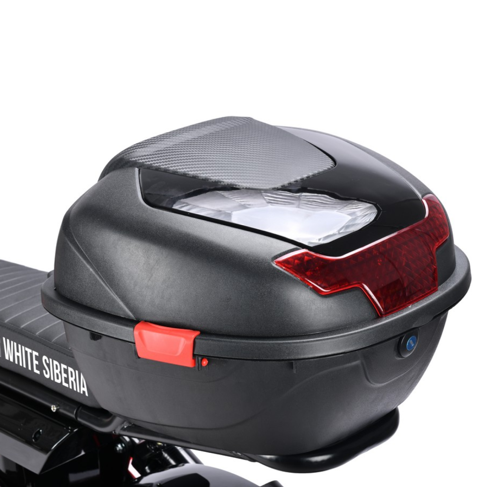 Дополнительные преимущества модели включают большое удобное сиденье, яркую светодиодную фару с линзой и указатели поворота, большой дисплей бортового компьютера, отделение для мелких предметов под сиденьем, а также площадку для крепления бокса или корзинки.