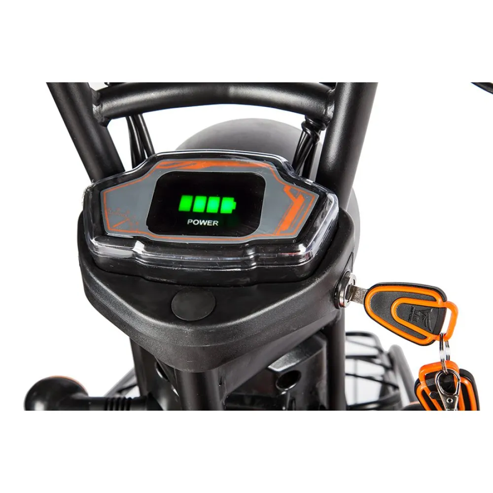 Повышенная устойчивость объясняется широкими колесами с протекторным рисунком для лучшего прохождения тс по неровной дороге. Модель обработана специальным сверхпрочным покрытием, надежно защищает от повреждения металла коррозией и различных деформаций. Максимальное прохождение расстояния на одном заряде обеспечивается долговечным аккумулятором электротрицикла. Приятной неожиданностью пользователю станет наличие охранной сигнализации с фирменными брелоками для защиты от угона.