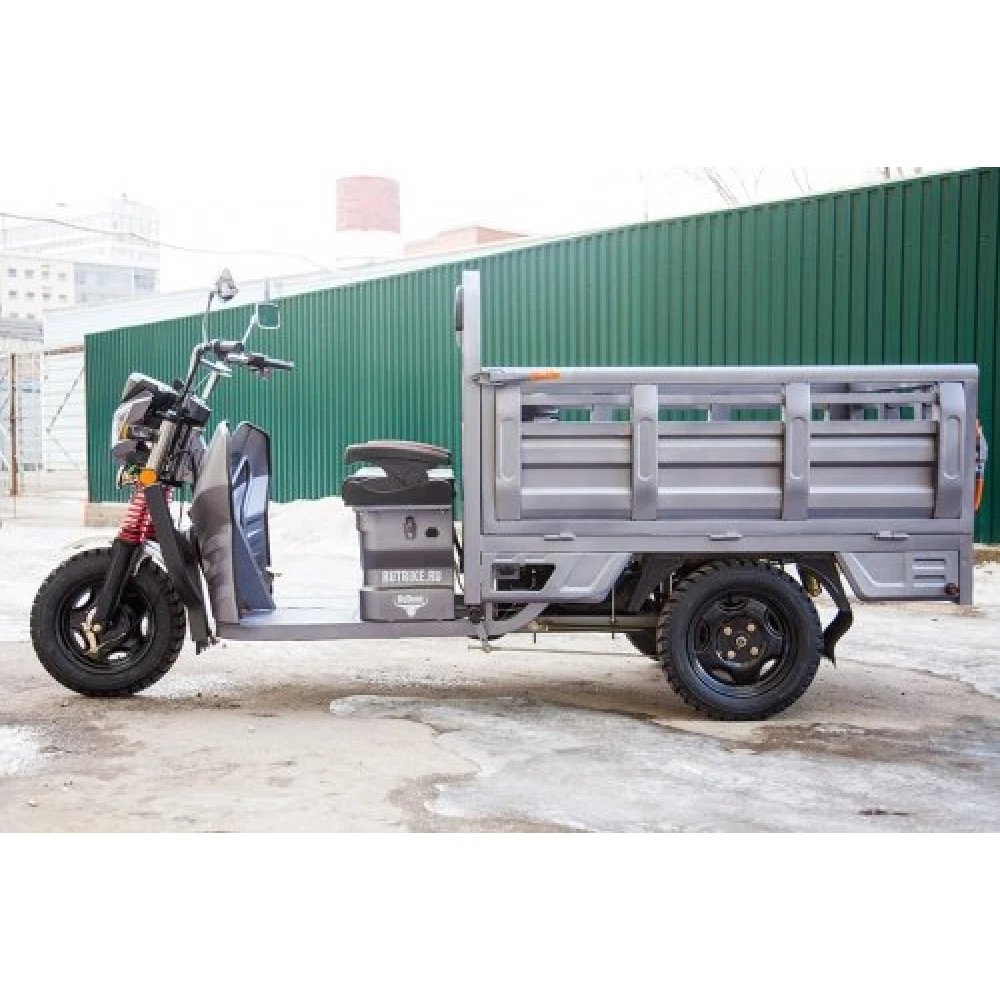 Грузовой электротрицикл Rutrike Антей-У 1500 60V1000W, цвет серый – самое популярное транспортное средство на отечественном рынке продаж. Надежность, креативный дизайн и идеальные формы делают технику узнаваемой и востребованной. Модель рассчитана для работ в саду и приусадебных участках, поездках по пересеченной местности. Приобрести товар по лучшей цене, получить отличное впечатление от покупки и взаимовыгодные условия доставки предлагает наш интернет-магазин.