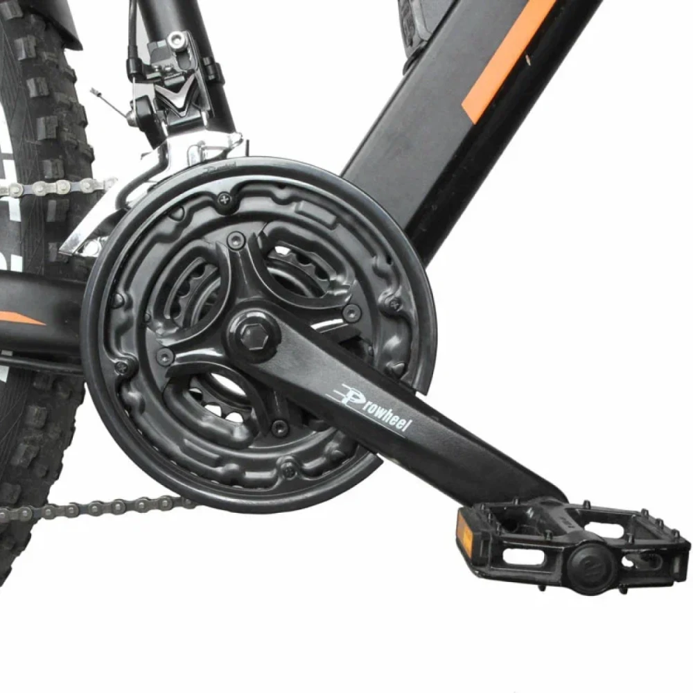 Трансмиссия техники представлена 24 скоростями. Переключение проводится с помощью заднего и переднего брендового переключателя. Мощность двигателя достаточная для преодоления проблематичной местности и езды по бездорожью, составляет 500 Вт. Максимальный пробег на одной подзарядке – 50 км.