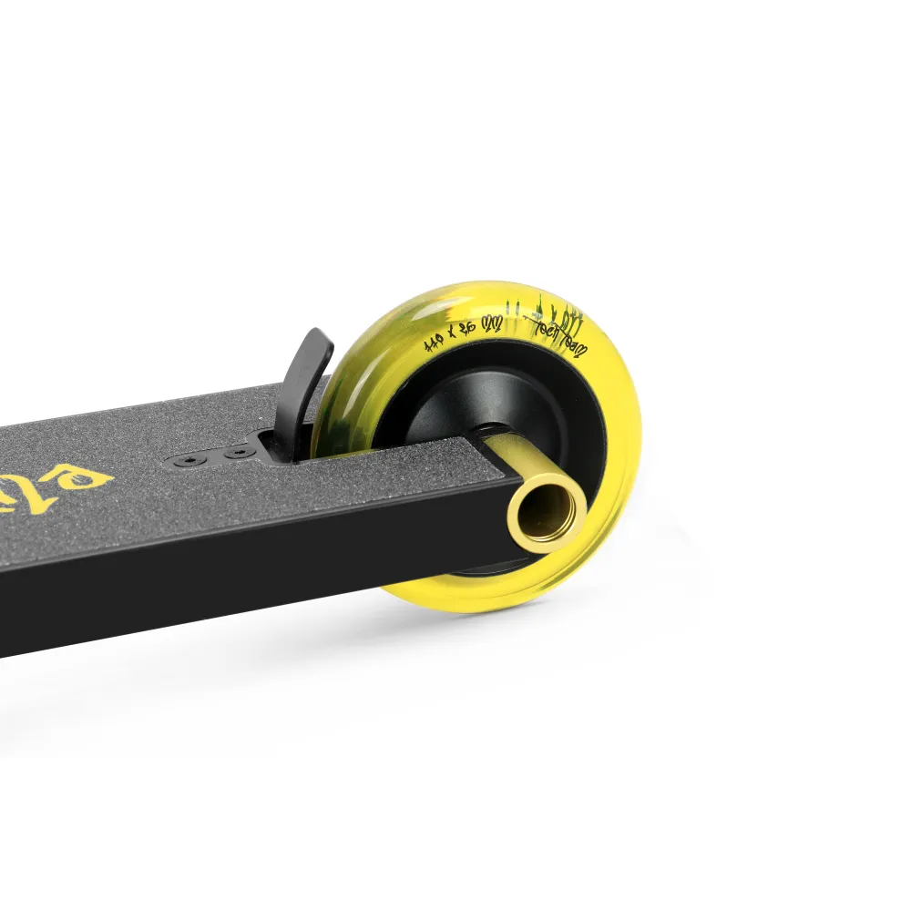 Колесная часть представлена алюминиевыми дисками с параметрами жесткости 88А, имеет диаметр 110 мм, допускает езду по городской местности и парковой зоне. Технические характеристики самоката подходят для новичков, а также более продвинутым пользователям с параметрами роста 168-185 см.