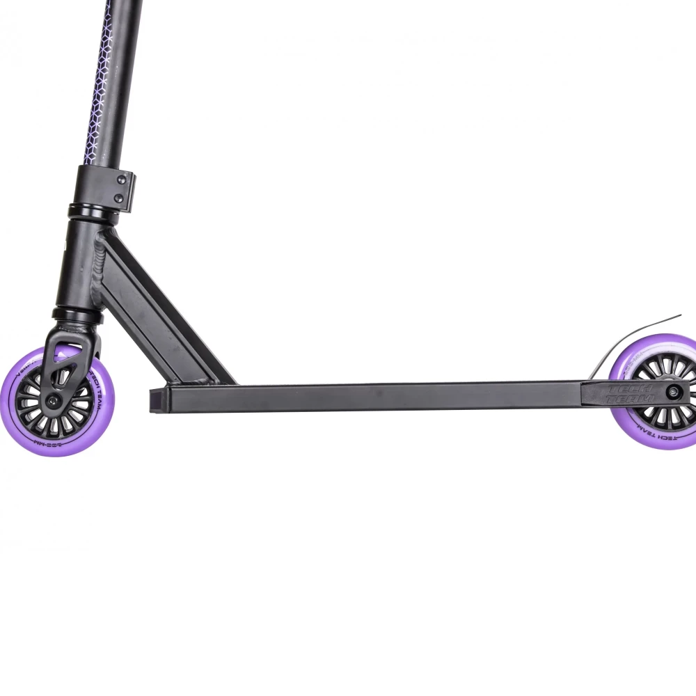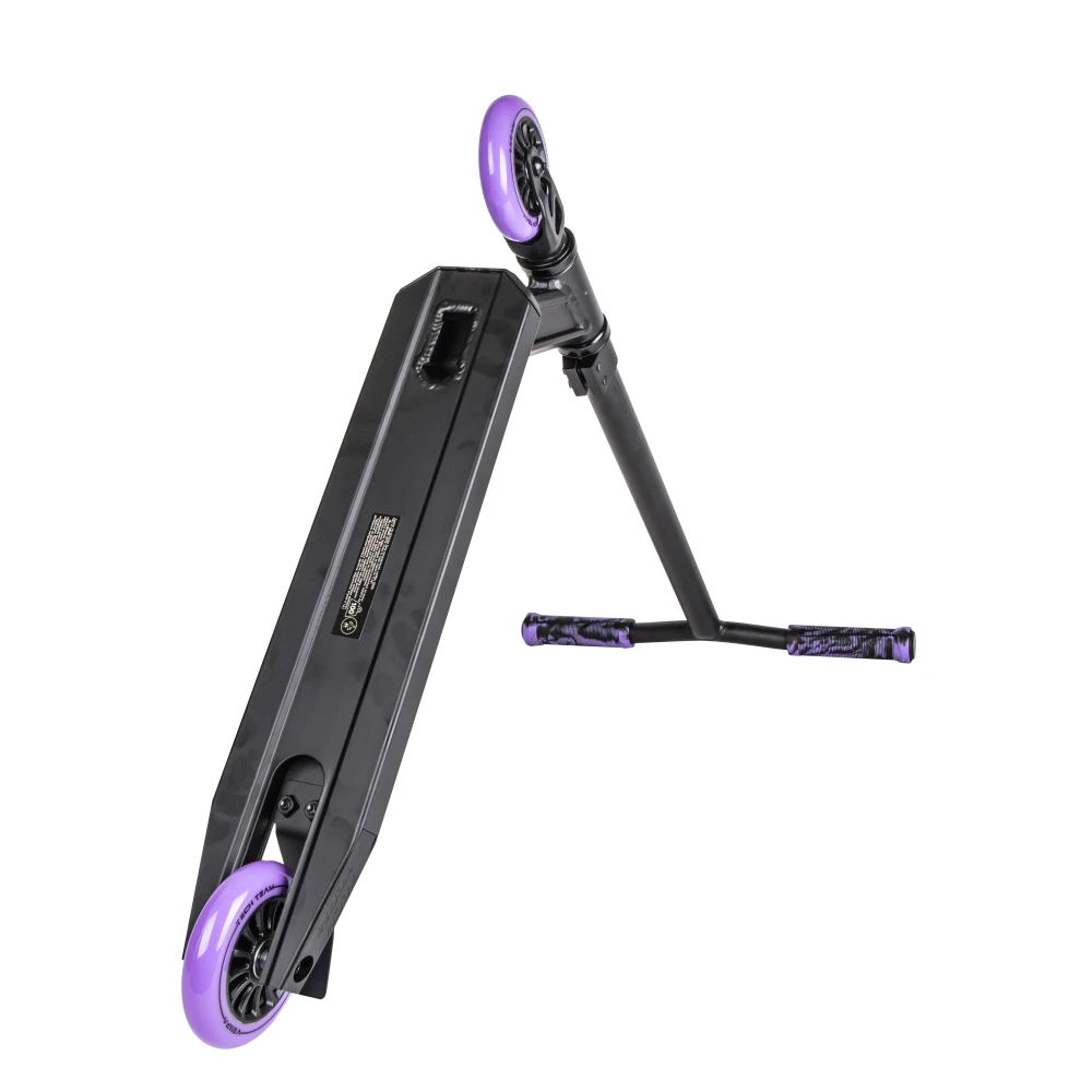 Небольшие размеры деки и рулевой части сделали технику удобной, компактной для начинающих райдеров. Покрытая нескользящей шкуркой дека увеличивает степень безопасности. Ширина допускает одновременное размещение стоп. Прорезиненные грипсы исключают соскальзывание рукути. 100 мм колеса из полиуретана накатистые и скоростные, рассчитаны на жесткую эксплуатацию. Своевременность торможения гарантирована задним тормозом.