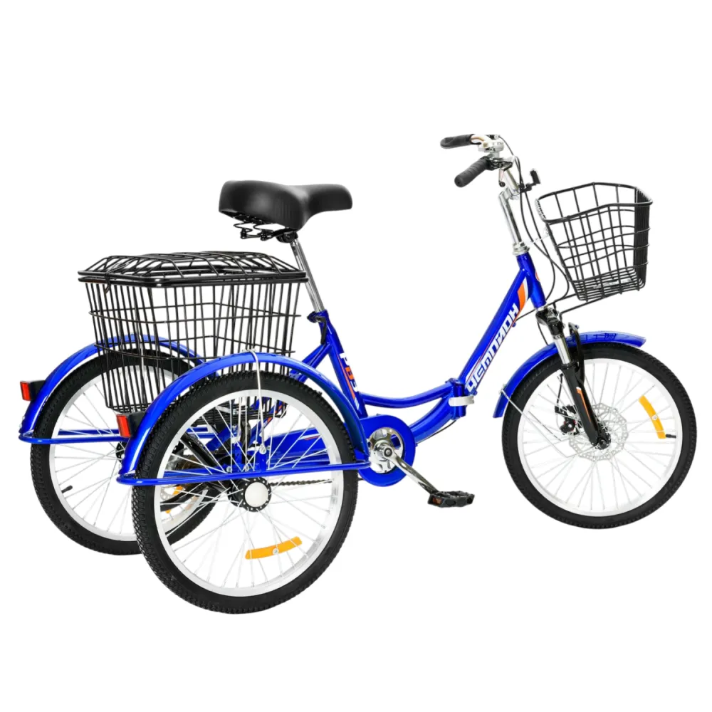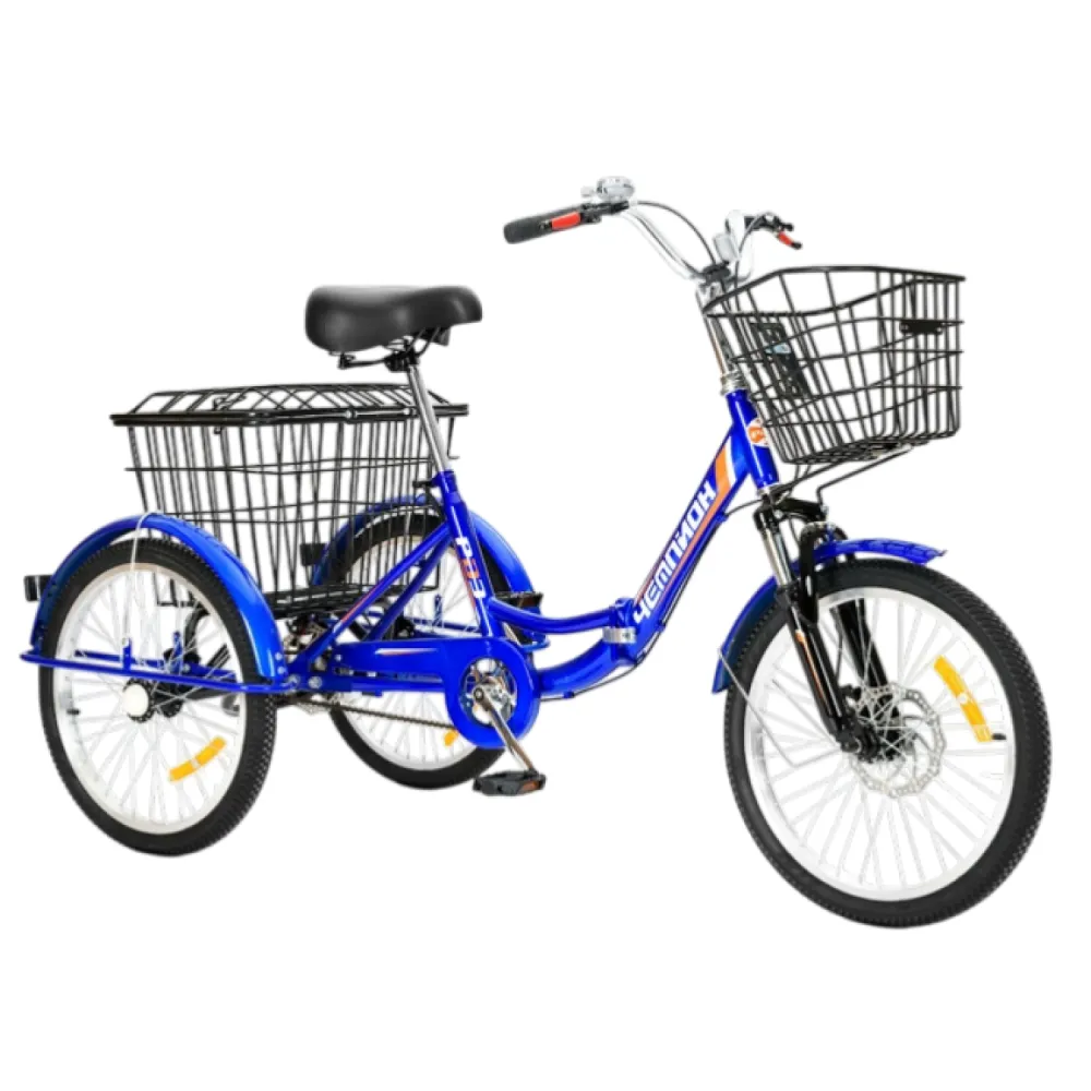 Трехколесный велосипед для взрослых РВЗ Чемпион 20" 1 скорость (складной) синий